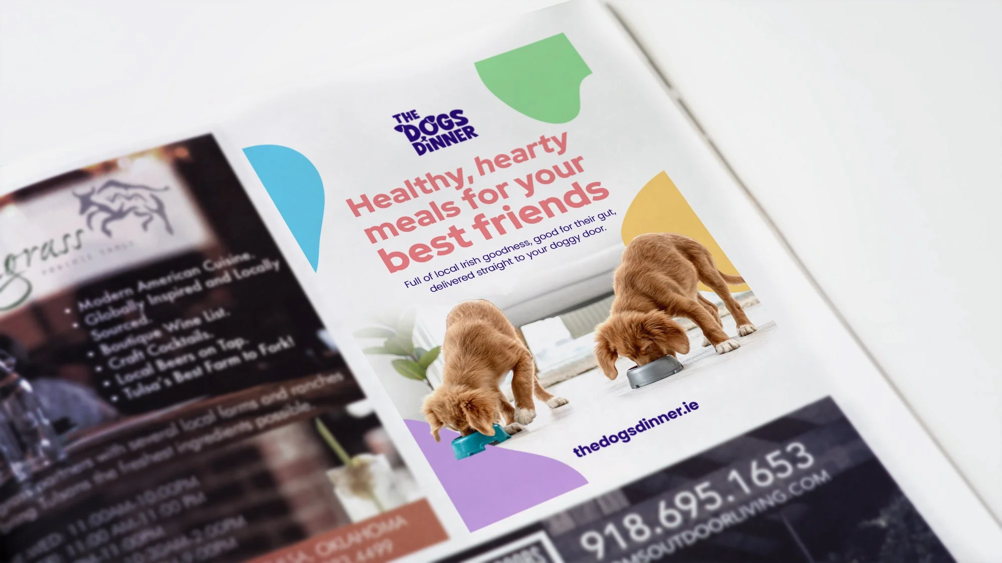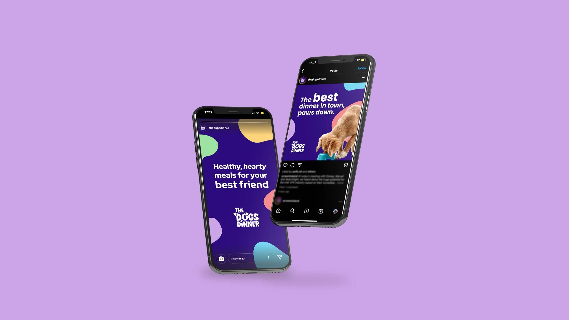 The full brand world was explored across every touchpoint, including the wordmark, colour palette, typography, copywriting, packaging, website homepage, and social media. Together, these elements build a cohesive and engaging brand experience that captures the heart of The Dog’s Dinner: nutritious food made with love, for dogs who deserve the very best.